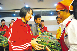 8日下午,南京快易洁清洗公司的保洁员们欣喜地收到了一份来自东南大学机械工程专业09级同学送来的礼物——400多套泛着洗衣粉香味的整洁如新的军训服。“这种布料和颜色的衣服当工作服最好了,又耐脏又经穿。”一位来自安徽的保洁员对于这份礼物感到很惊喜。
