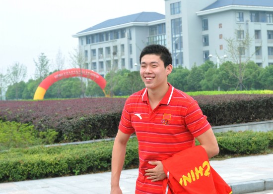 8月28日,南京东南大学新生开学,人文学院新生、奥运选手郝运来到学校,受到同学和老师的关注。在2012年伦敦奥运会上,郝运获得男子400米自由泳第四名,他还和队友合作,夺得男子4*200米自由泳接力赛的铜牌。奥运会之前,郝运已作为高水平运动员,于7月份被东南大学人文学院录取。入学后,东南大学及国家游泳队将采取“体教结合”的培养模式、以“送教上门”为主的教学方式,确保他在完成学业的同时,继续提高运动水平。图为郝运行走在东南大学校园里。