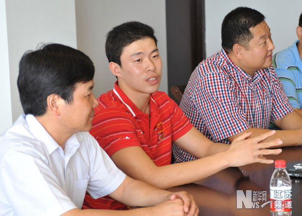 新华网江苏频道南京8月29日电 8月28日,南京东南大学新生开学,人文学院新生、奥运选手郝运来到学校,受到同学和老师的关注。