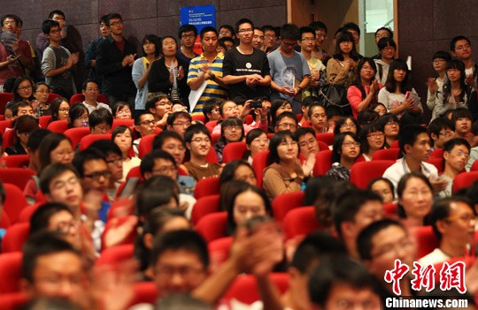 10月15日晚,著名学者、中央电视台“百家讲坛”主持人易中天教授来到南京东南大学人文大讲堂,以“中庸的原则”为题与东大学子畅谈中国智慧,吸引了众多大学生前来聆听,现场座无虚席。