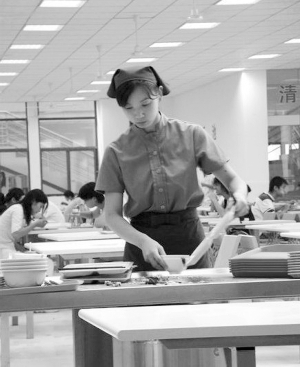 一行简短的介绍,照片上一个服务生打扮的年轻女孩,垂着头,专注地收拾着餐盘。短短一天过后,这条微博得到了400多次转发。