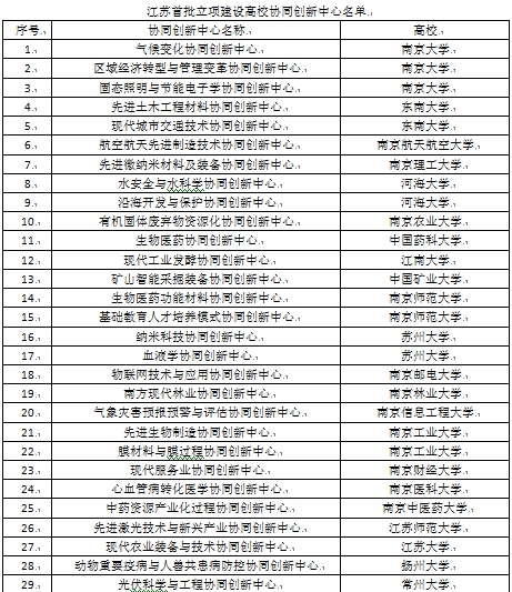 江苏首批立项建设高校协同创新中心名单