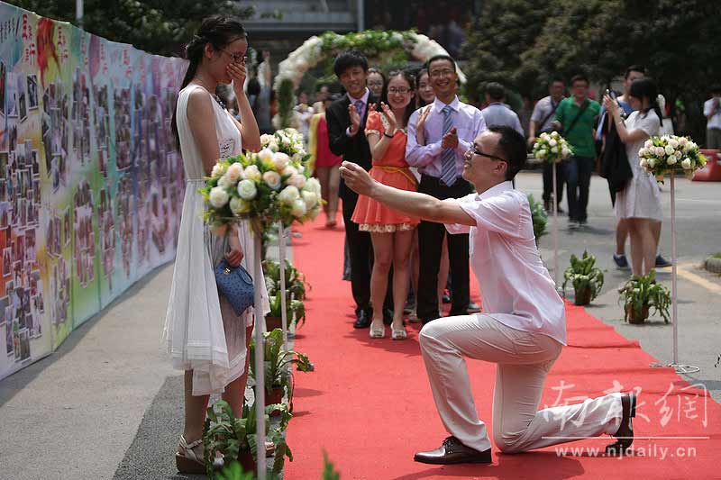 南报网讯 6月17日,东南大学医学院为570名应届毕业生举办“似水流年、医梦留夏”红毯走秀仪式,在300名本科毕业生中,有125名临床医学专业留学生格外耀眼。毕业生们两两搭配,展示别样风采,纪念大学美好时光。活动中,一位名叫黄长根的男生在红毯上向女友求婚,上演浪漫一幕。 通讯员 许启彬 南报网记者 徐琦摄