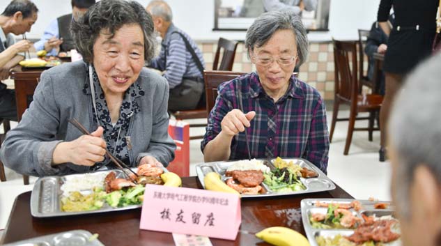 东大校友院庆返校重温大学梦 学生食堂排队打饭再吃“青春饭”