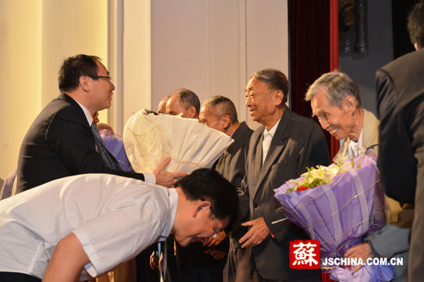 中国江苏网10月8日讯(通讯员 许启彬 记者 袁涛)东南大学电气工程学院培养的第一位硕士陈秀华、第一位博士蒋全、第一位博士后胡敏强、第一位国家杰出青年科学基金获得者鞠平、第一位大学女校长陈星莺、海外大学教授代表张小平以及东南大学北京校友会动力电气分会会长王凡、最年轻的教师吴熙等后学向周鹗等9位年过八旬的老前辈献花鞠躬致敬,传承东大电气精神。这是10月6日上午举行的东南大学电气工程学院办学90周年纪念大会上上演的感人一幕。怀恩报本,饮水思源,60多岁的年龄差距中不仅镌刻着电气学科90年的办学历程,也盛满了后学对前辈浓浓的崇敬、感恩和祝福之情。