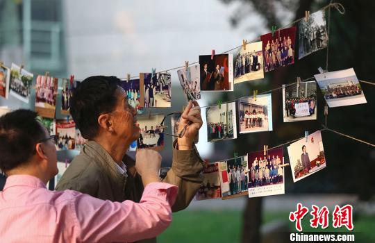 悬挂的百幅老照片勾起校友们的美好回忆。 泱波 摄