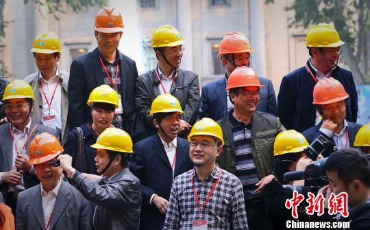 10月20日,东南大学校友头戴象征建筑行业的工程安全帽在校园内合影。当日,南京东南大学土木工程学科(系、学院)迎来90华诞,海内外校友齐聚四牌楼校区大礼堂共叙同窗旧情。据悉,东南大学土木学科由著名桥梁大师茅以升于1923年倡导成立。
