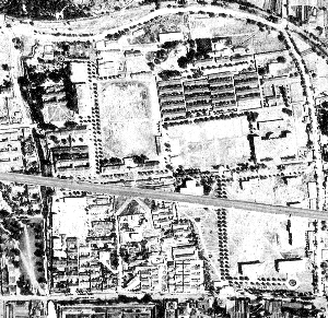 胡卓然从刚刚发现的1929年校园飞机航拍照片中找寻答案。他发现“金陵路”的路廓在1929年就已存在,化学教室其实在路的北侧,在今天东南大学校园建筑“金陵院”(现为一座工字形建筑)建筑的西半部分位置上。随后根据东南大学校史馆的实地踏勘,胡卓然又进一步发现,化学教室原址范围与 “金陵院”的西侧半部分大部分重合。“金陵院”南侧和西侧的草坪也有一半以上位于历史上的化学教室范围内。