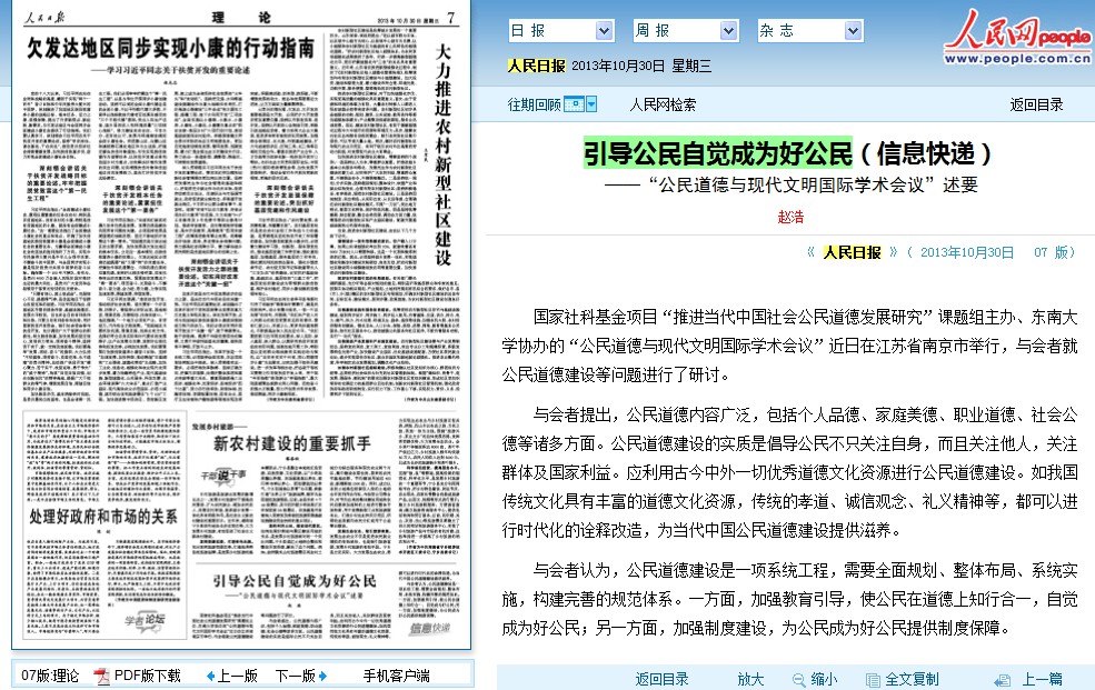 国家社科基金项目“推进当代中国社会公民道德发展研究”课题组主办、东南大学协办的“公民道德与现代文明国际学术会议”近日在江苏省南京市举行,与会者就公民道德建设等问题进行了研讨。
