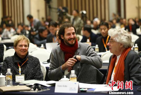 图为来自国外的建筑大师在相互交流。泱波 摄
