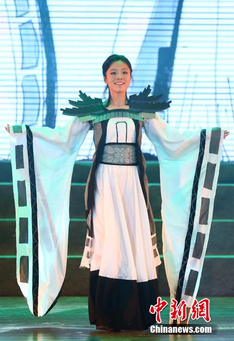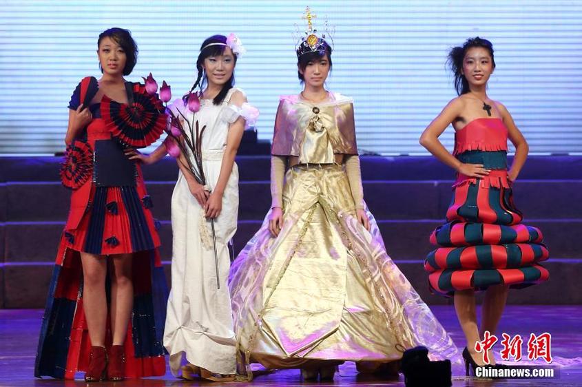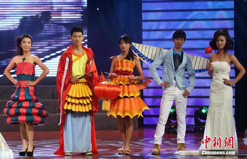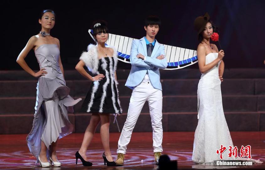 11月22日晚,南京东南大学的大学生在舞台上展示他们根据不同建筑的造型,用纸张设计制作的“建筑时装秀”。当日,持续两个月的“2013年东南大学新生文化季”在九龙湖校区举行闭幕式暨新生文艺汇演,以“梦想从东大启程!”为主题,结合中国梦和爱国爱校的教育,上演凝聚新生智慧与创意的节目,吸引了众多大学生前来分享充满青春活力、饱含文化气息与人文精神的文化大餐。中新社发 泱波 摄
