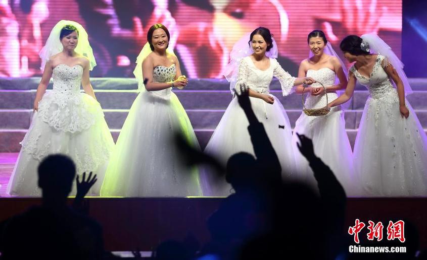 11月22日晚,南京东南大学五对辅导员老师在舞台上举行集体婚礼,接受大学生们的祝福。当日,持续两个月的“2013年东南大学新生文化季”在九龙湖校区举行闭幕式暨新生文艺汇演,以“梦想从东大启程!”为主题,结合中国梦和爱国爱校的教育,上演凝聚新生智慧与创意的节目,吸引了众多大学生前来分享充满青春活力、饱含文化气息与人文精神的文化大餐。中新社发 泱波 摄
