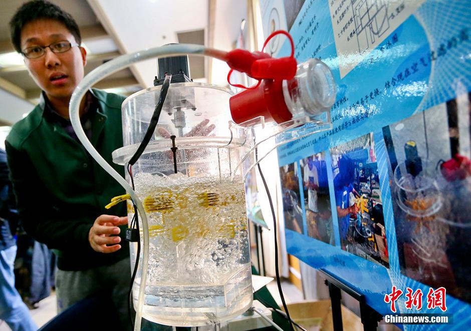 11月23日,由江苏省高校大学生物理及实验创新竞赛组织委员会主办、东南大学教务处和物理系承办的江苏省高校第十届大学生物理及实验科技作品创新竞赛在东南大学举行。来自省内42所高校的234项作品跻身物理论文及实验制作两大类决赛答辩,展现了江苏高校大学生在物理学科的创新水平与实践技能。图为一位参赛学生展示利用水滤将亲水性粉尘进行分类处理的“水滤式空气净化装置”。泱波 摄