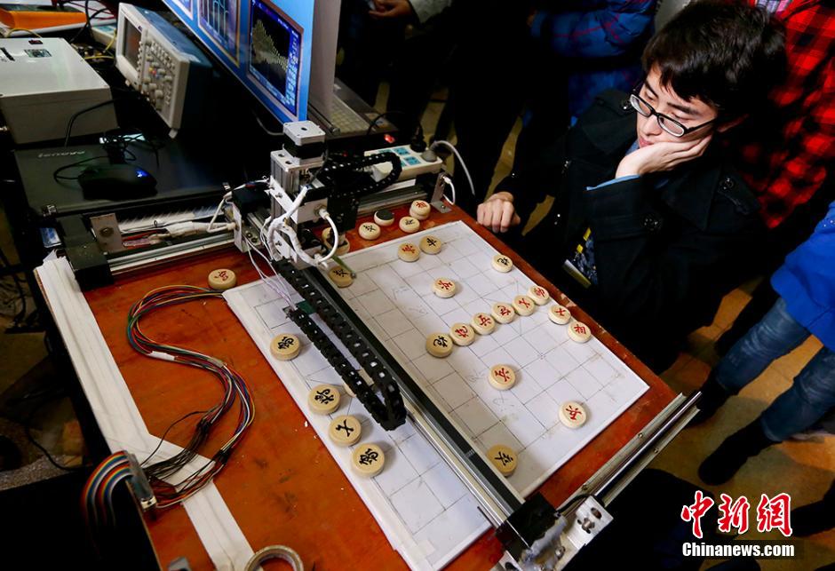 11月23日,由江苏省高校大学生物理及实验创新竞赛组织委员会主办、东南大学教务处和物理系承办的江苏省高校第十届大学生物理及实验科技作品创新竞赛在东南大学举行。来自省内42所高校的234项作品跻身物理论文及实验制作两大类决赛答辩,展现了江苏高校大学生在物理学科的创新水平与实践技能。图为一位参赛学生进行“智能型实物棋盘人机对弈机器人”。泱波 摄