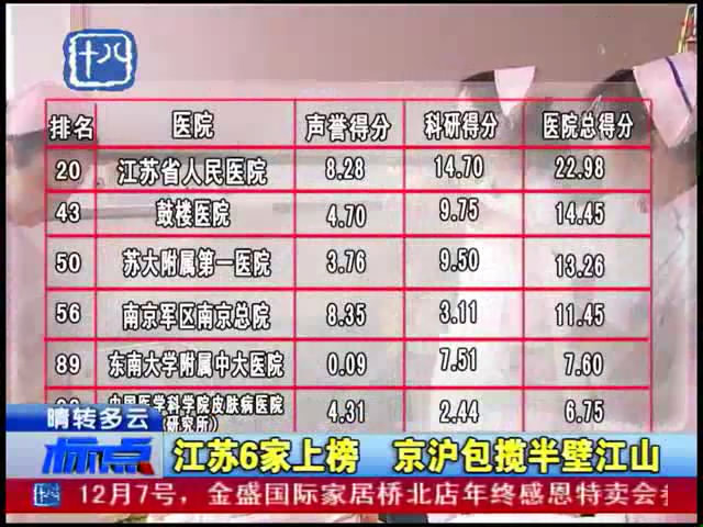 【南京十八频道:标点】2012“最佳医院排行榜出炉”东南大学附属中大医院上榜
