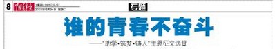 一开始,我始终找不到自己的位置。上课时,我总是坐在第一排,可一点都没听懂。凭着骨子里倔强的劲头,我经常在教室里看书看到一两点,还把毛巾、洗发膏、牙刷都带去通宵。功夫不负有心人,通过努力,我不断提高了自己的能力,增强了自信,在大三学年,我在学院担任了团总支书记,负责学生工作。