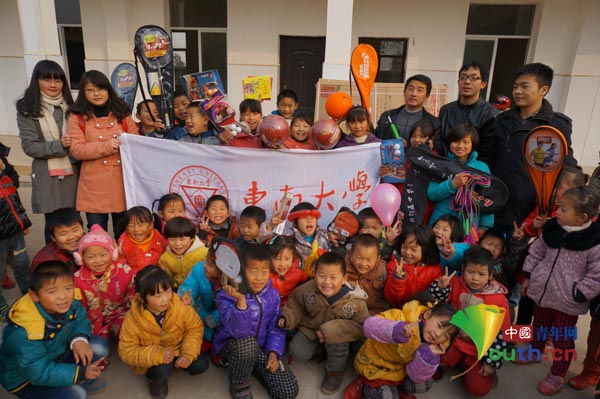 中国青年网北京12月30日电(记者李延兵)12月26日,团共青城市委组织东南大学研究生支教团江西分队的支教队员,来到江西共青城坪塘小学,为孩子们送去迟到的“圣诞礼物”。