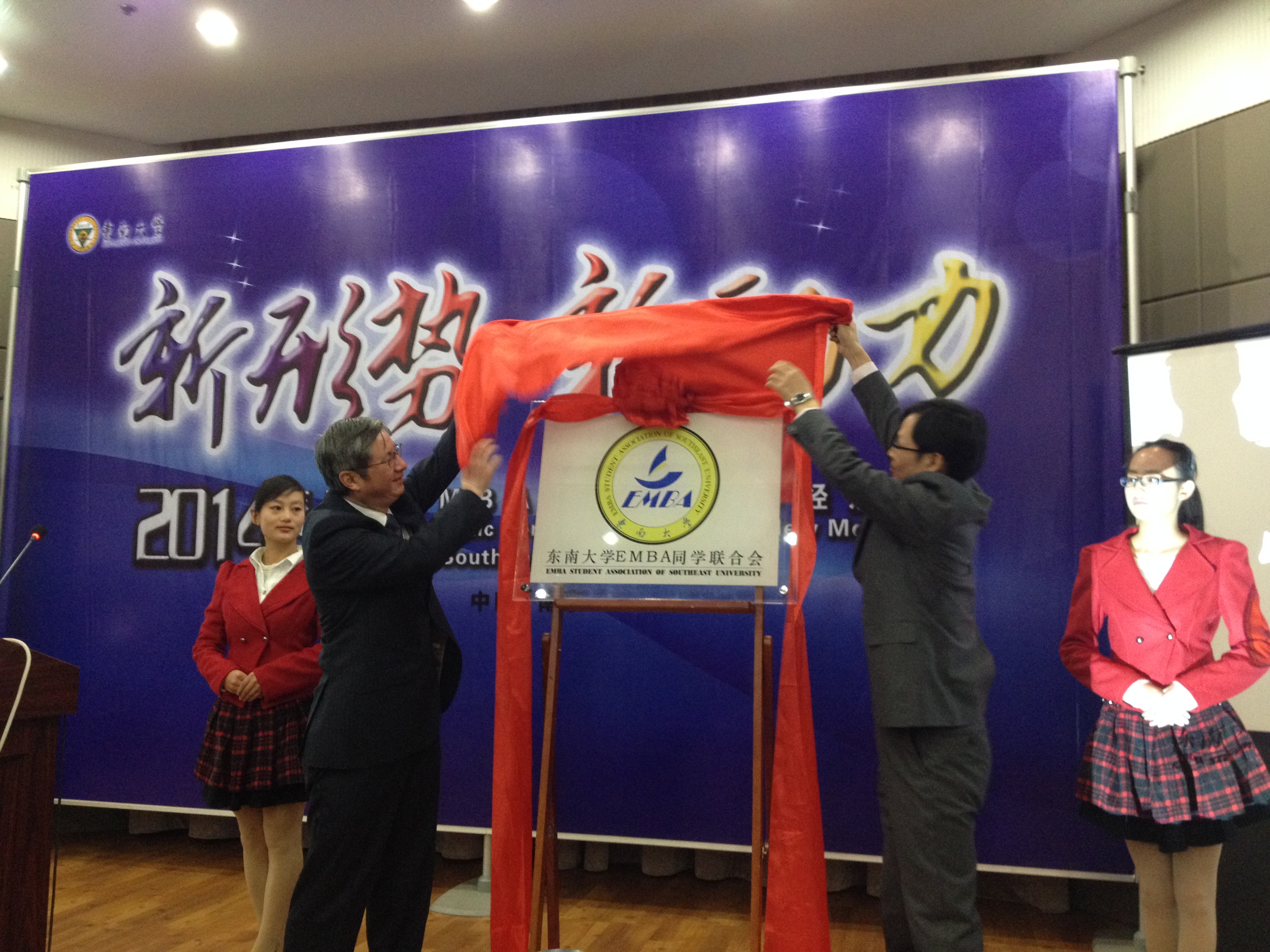 東南大學經濟管理學院EMBA同學聯合會成立,徐康寧院長和汪家寶同學一起為同學聯合會揭牌