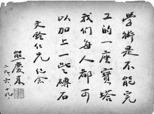 学术是不能完工的一座宝塔,我们每个人都可以加上一些砖石。——熊庆来