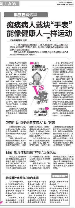 不仅如此,昨天,金陵晚报记者从东大获悉,东大的异体操控技术已经成功使10多例瘫痪病人“动起来”。