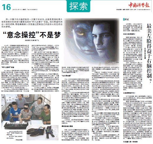 “最初我们只是想避免让一只猴子为了实验而‘偏瘫’,所以我们想到用两只猴子。”Ziv Williams在邮件中回复道,“后来《阿凡达》热映,我们觉得它刚好能说明我们正在作的研究,所以我们想到用‘阿凡达’形容我们的试验。”