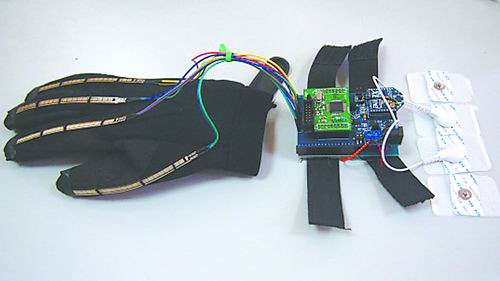 “神手”系统:控制手套与发射机。