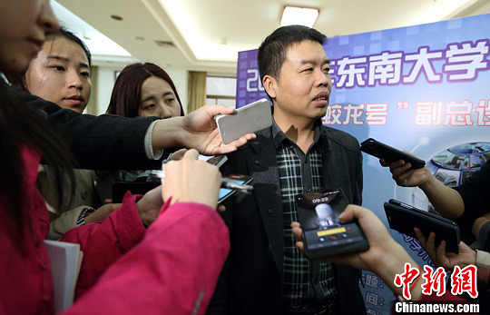 3月19日,“蛟龙号”副总设计师胡震接受媒体访问。当日,以“崇尚学术探索,追求科学真知”为主题的2014年东南大学学生科技节开幕式暨“蛟龙号”副总设计师胡震“‘蛟龙号’载人潜水器研制与应用”专场讲座举行。中新社发 泱波 摄