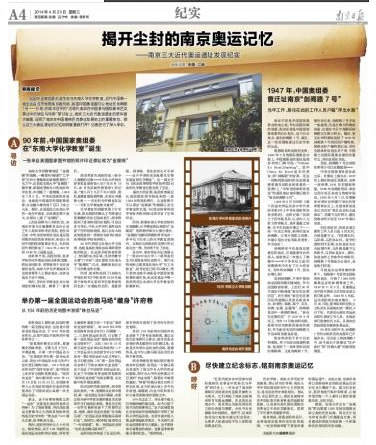 民国中国奥组委的诞生地在东南大学化学教室、近代中国第一届全运会召开地是南京跑马场、民国中国奥组委办公地址在剑阁路7号—日前,在南京召开的“近现代南京在中国参与国际奥林匹克事业中的地位与作用”研讨会上,南京三大近代奥运遗址的资料首次披露,证明了南京在中国奥林匹克事业发展史上的重要地位。那么这三大奥运遗址的记忆如何被重新打开?记者进行了深入采访。