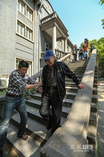 吴老坐在当年的中央大学集训、生活过的体育馆前,接受了凤凰江苏专访。