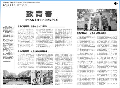 又是一年春华,青葱的脚步正纷纷地踏近,在古都南京,百年名校东南大学正敞开怀抱,等待你的到来……