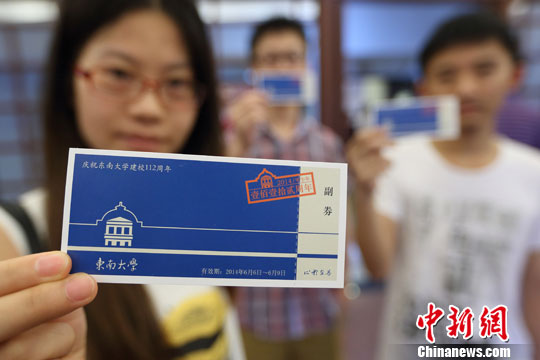 6月6日,大学生们展示免费发放的校庆餐券。 中新社发 泱波 摄