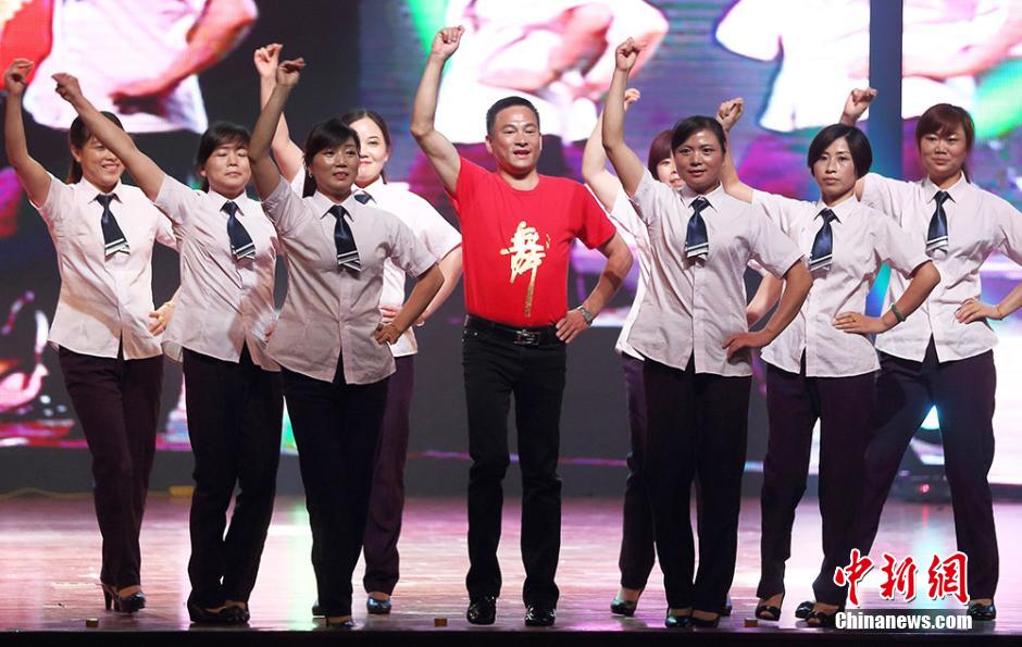 图为物管大叔大妈们的上台引爆全场。泱波 摄