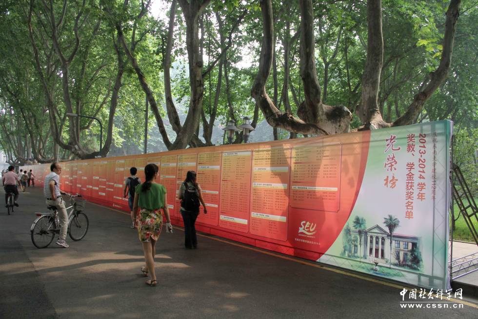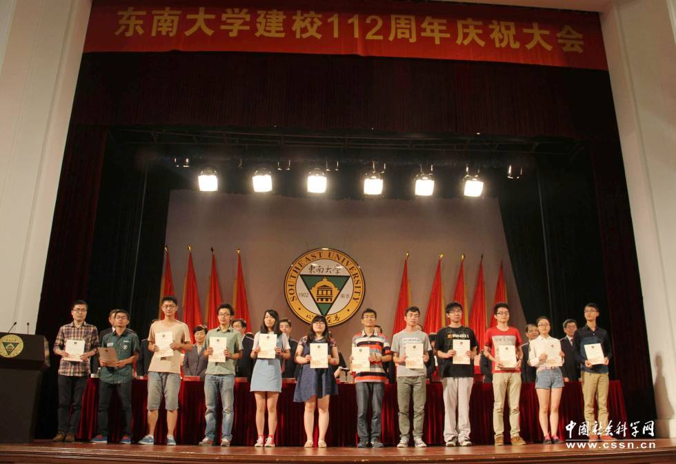 图为庆祝东南大学建校112周年:2013-2014学年奖教、奖学金获奖名单光荣榜。