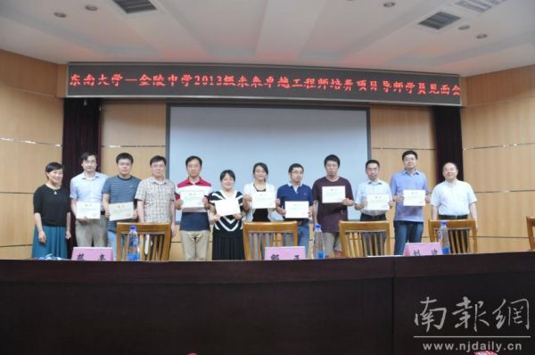 南报网讯 (记者 钱红艳 通讯员 顾建)今天(10日)下午,东南大学——金陵中学未来卓越工程师培养项目学员导师见面会在金中举行。在未来一年时间内,金中30名学生将在15名东大导师的带领下,做课题写论文,提前接触工程技术领域,培养创新能力。
