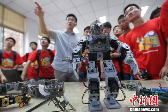 青少年科学营营员们参观东南大学机器人实验室。泱波 摄