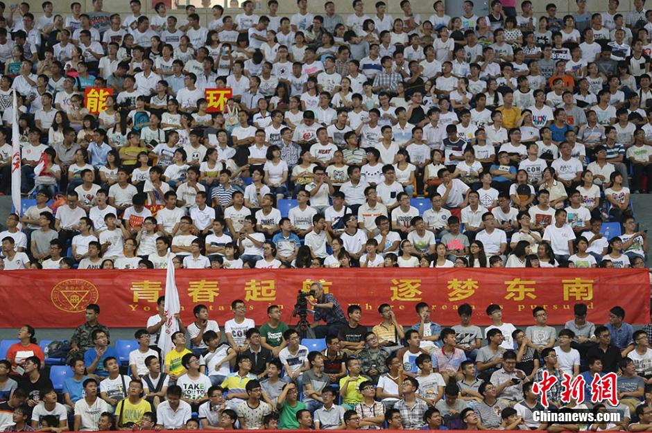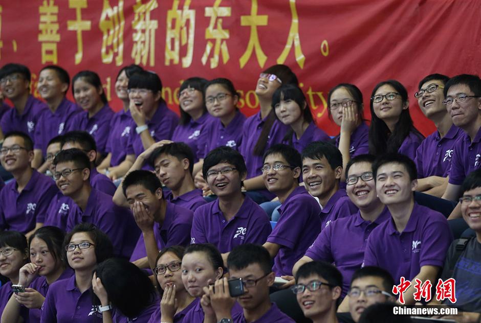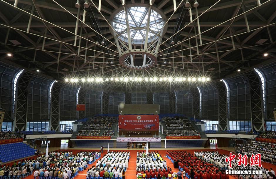 9月1日,南京东南大学2014级本科生开学典礼在九龙湖校区体育馆及各分会场同步举行,现场举办院系方阵展示、“追梦青春”短片播放等一系列互动环节,近4000名来自全国各地的新生以饱满的精神投入大学生活,绽放美丽青春。中新社发 泱波 摄