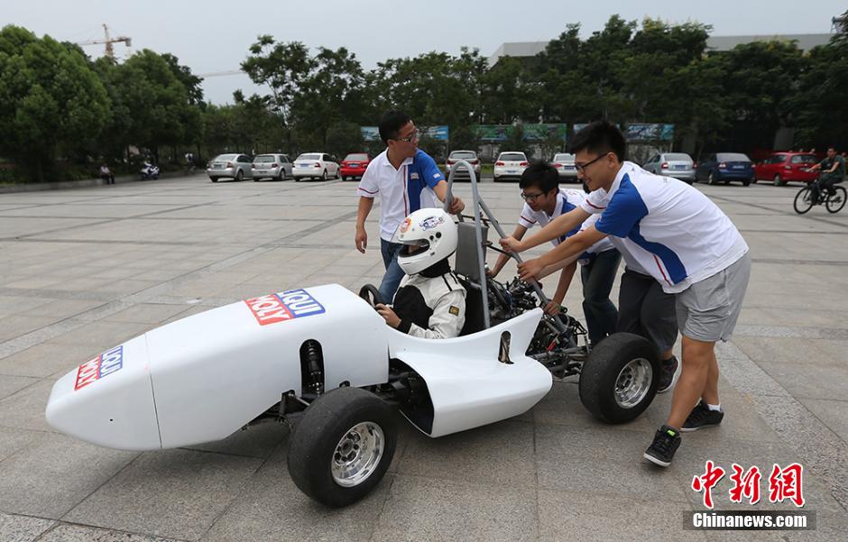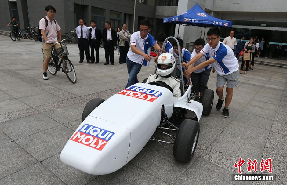 9月11日,一支由65名东南大学在校大学生组成的东南大学力魔车队在九龙湖校区进行展示和调试。据了解,队员们来自机械工程学院、电子科学与工程学院、电气工程学院等不同专业,经过前期合力研发、三个多月的加工,打造出一台外形酷炫、动力强劲的方程式赛车。目前各项性能正在测试中,将于下月征战在湖北襄阳举行的中国大学生方程式汽车大赛。泱波 摄