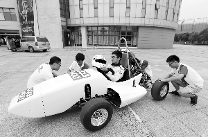 想省油,可不光是减轻重量就行。殷国栋说,同学们对发动机的控制系统和踏板还做了设计,“踏板是可以调节的,踩踏的程度不同,发动机里节气门开关的角度也不同。车子还能根据行车路线和车速计算出最佳耗油量,在弯道时,路线变化大又有急刹车,这时赛车就能根据需要自动调节,尽量减少耗油量。”学院大三男生史昀珂说,从去年11月组建团队以来,机械工程学院、电子科学与工程学院、电气工程学院、能环学院等众多院系的本硕博同学纷纷加盟。这辆车造价不低。单单造车就花了15万,还有四个车手,服装一人一万,车辆的运输费用往返2万,加上其他的运营费用花了28万。资金从哪里来?前不久,史昀珂在网上寻找赞助商,后来德国一家公司很感兴趣,赞助了15万元。