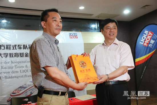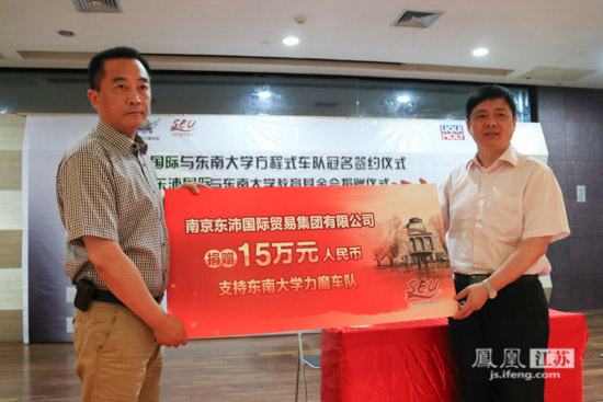 之后,双方代表共同签署了合作协议并互赠了礼品。在此次捐赠仪式过程中,东南大学教育基金会正式接收德国力魔捐赠款项,并用于东南大学车队的赛车研发项目。德国力魔作为一家知名企业,曾鼎立赞助包括F1、德甲足球、德国冰球等多项世界知名体育赛事,在冠名东大方程式赛车队之后,东南大学力魔车队将成为德国力魔在中国的第一支车队。