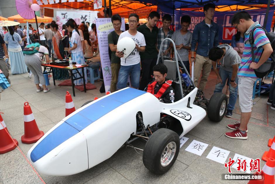 图为该校力魔车队的方程式赛车在现场作展示。