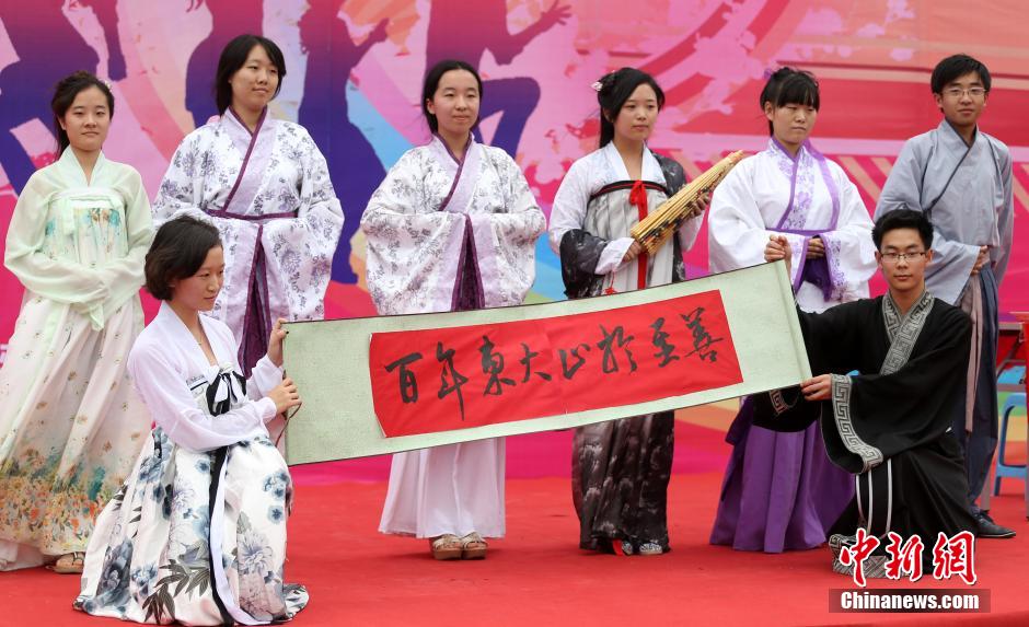 图为汉服社的成员表演节目。