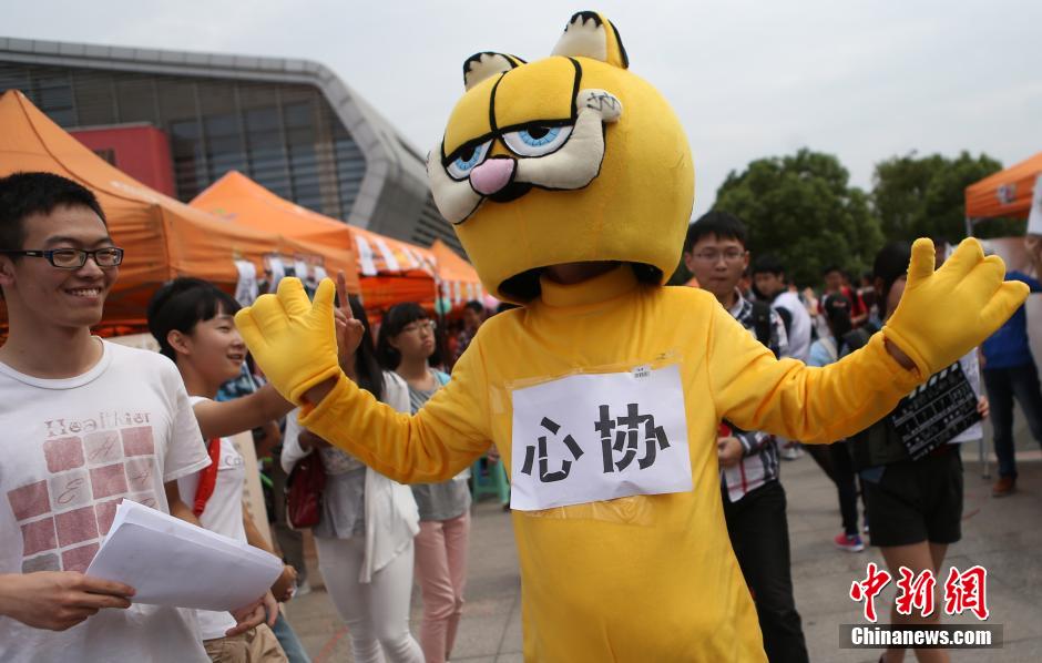 图为心理协会的成员打扮成加菲猫与同学们互动。