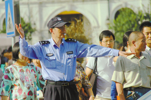 国庆期间,无锡公安抽调机关人员维护交通秩序。 盛国平摄