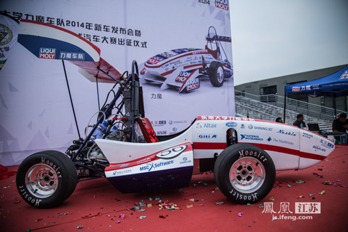 新车由红蓝白的三色简约组合,流畅的仿生造型设计,动感十足,给人眼前一亮。东大学子赋予了这辆赛车的生命与灵魂,这辆赛车的首捷将在湖北襄阳梦想方程式赛车场,为东大这所百年名校书写新的历史。
