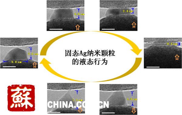 室温下,银纳米颗粒受挤压时表现出的液态行为(TEM照片)