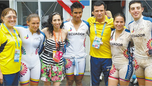 黄明美(左三)和参加南京青奥会的厄瓜多尔同胞在一起。 图片由受访人提供