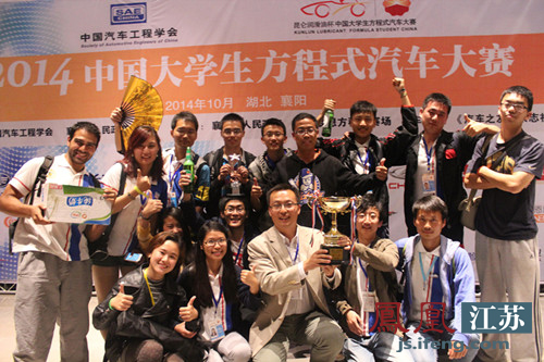 2014中国大学生方程式汽车大赛于10月18日在湖北襄阳成功落下了帷幕,所有动态比赛及静态比赛均圆满结束。当晚,参赛的80多支车队均有代表参加颁奖典礼。针对此次比赛,东南大学力魔车队作为首次参赛的车队,斩获了网络传播大奖,还凭借耐久最低耗油值22公里/1.26L将燃油效率赛冠军奖杯收入囊中,打破该比赛单项世界纪录,对于第一年参赛的他们而言,可谓一战成名,为校争光!
