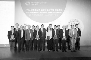 专业信息提供商汤森路透旗下的知识产权与科技事业部27日颁发了首届“汤森路透中国引文桂冠奖”,111名中国大陆科学家获得“高被引科学家奖”,其中15名科学家被授予“最具国际引文影响力奖”。“科研团队奖”则由一支8位高被引科学家组成的科研团队摘得。