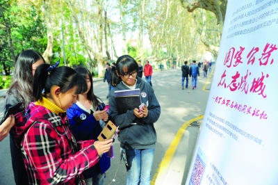 昨天上午,东南大学四牌楼校区的中央大道上,百余名师生自发向路过的校友发放“公祭加砖”传单,他们拿出手机,注视着同一界面,扫一扫二维码,为“国家公祭众志成城”添砖加瓦。活动现场,这款互动产品,获得了许多师生的点头称赞并踊跃参与,祭奠南京大屠杀遇难同胞。东南大学大二学生胡凯说:“以前都是通过课本、报纸、电视等途径了解南京大屠杀的,而公祭日活动则能够更加贴近我的生活。通过微信二维码‘加砖’这种悼念方式,不仅操作方便,同时也能增强我的参与感和对公祭日活动的关注度。”