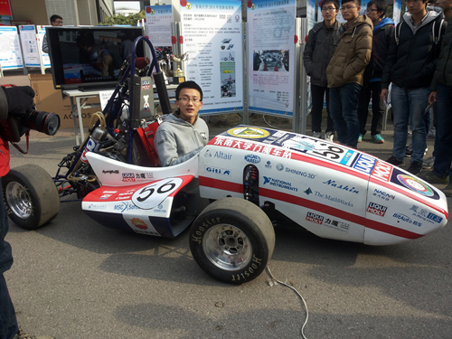 成果展示会现场,一辆2870*1410*1258(单位:mm)赛车,一下子吸引了众多人群的围观,那就是东南大学机械工程学院的力魔车队。车队于2013年10月成立,是首次参加FSC赛事。在2014年10月18日力魔车队第一次参赛,就获得了赛事网络传播大奖,并以1.26升的耗油量(时速108公里)打破了在FSAE德国赛上创造的1.7升最低耗油量的世界纪录,将含金量最高的燃油效率赛冠军奖杯收入囊中。
